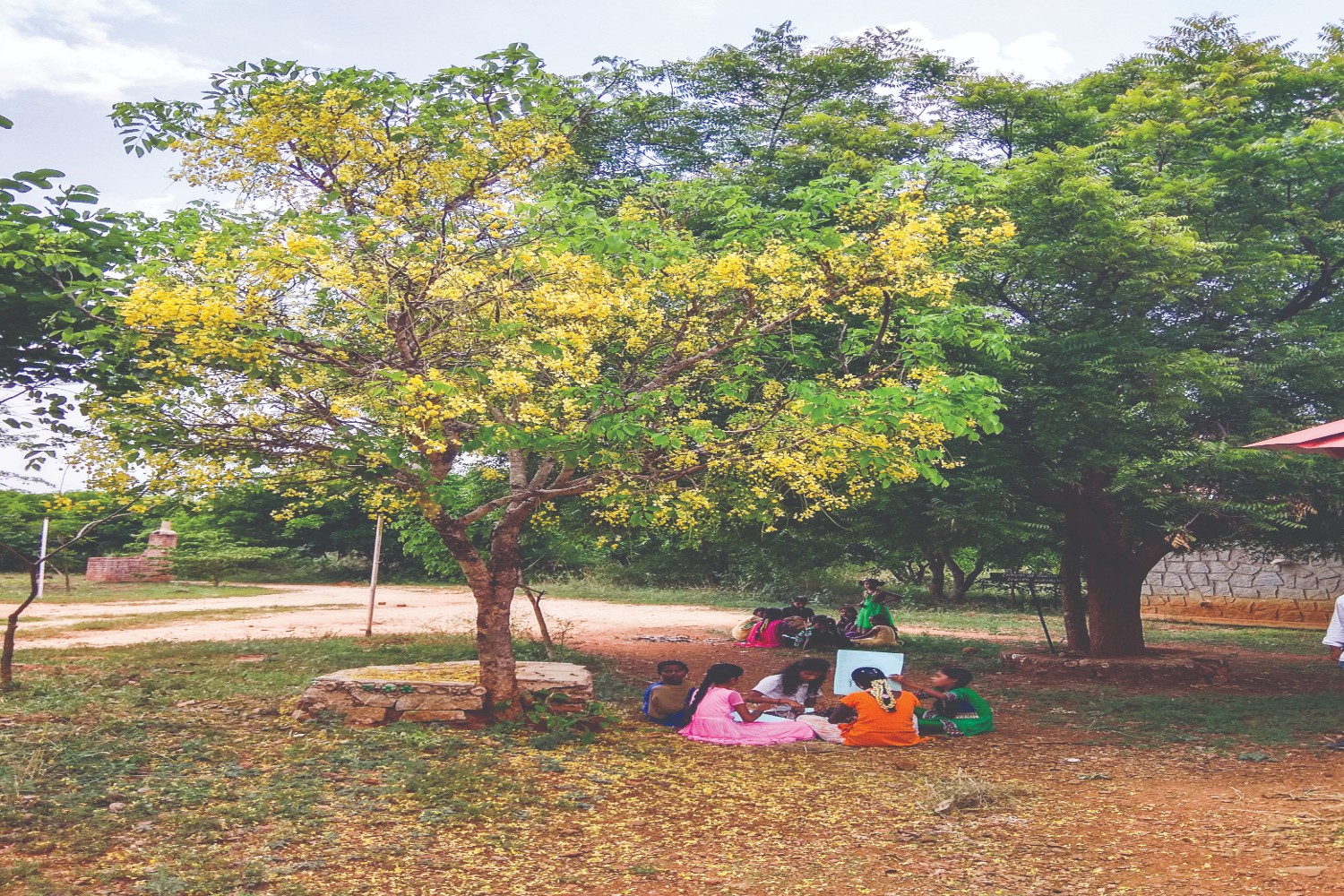 The content of the course was focused around addressing land degradation, as that is the major issue faced by the community. The idea was for children to learn skills and concepts to improve their own situation in the village. The pedagogy involved encouraging children to work on the activities given in the workbook in small teams, facilitated by teachers. This approach was different from the instructional method that teachers had been used to until then. It involved not only stepping back and allowing students to explore and construct knowledge on their own, but also grasping the philosophy behind systems thinking as opposed to looking at EE as science or social science in order to help students learn.