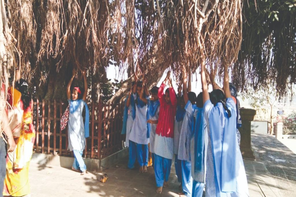 The pedagogy emphasizes heavily on developing environmental awareness amongst the girls. Each child from early on is encouraged to interpret information about their environment through hearing, touching, and smelling. For instance, if a child is being taught about an animal, say, a dog, then the educators use a model of the animal so that the students can understand its physical attributes and they also play the sounds made by the animal. This experiential pedagogy helps the girls gain useful knowledge about any subject matter.