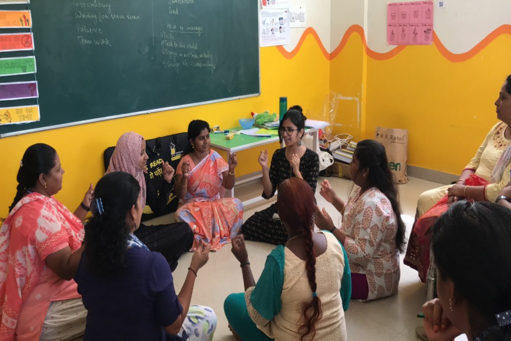 Creating and supporting teachers’ communities is also crucial. Most of the teachers in ECCE work separately from the other teachers in the school. They often feel very lonely. In all our interventions, we create teacher communities via WhatsApp groups. These give teachers a space to share their challenges and best practices with each other. We have seen that these spaces add to a teacher’s motivation.
