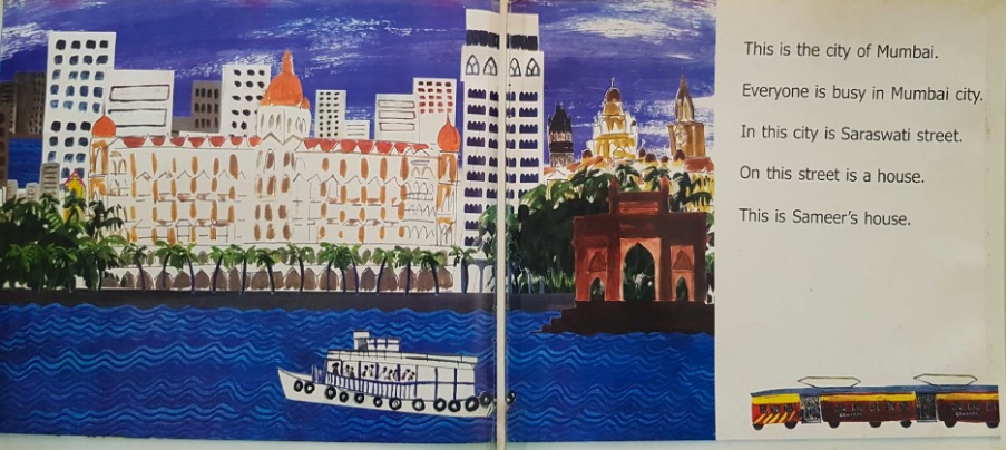 Figure 05: Pages from Sameer’s house (2006) showing the sequential build-up in the interplay of text and illustrations to engage children.