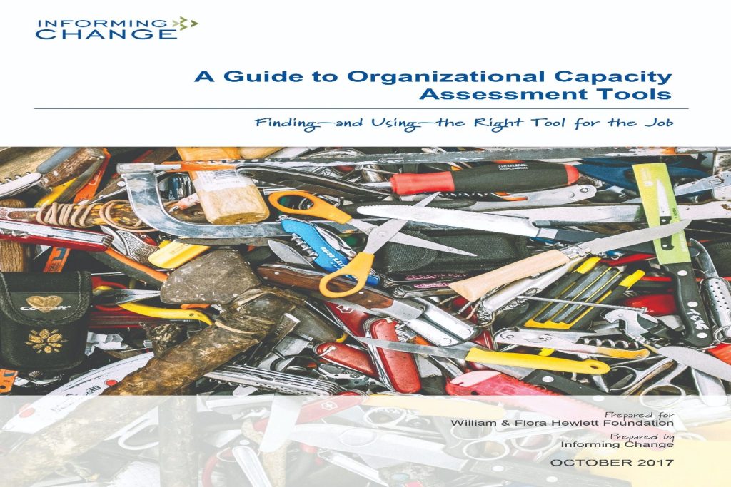 Bibliographic Details: A Guide to Organizational Capacity Assessment Tools: Finding and Using the Right Tool for the Job. Prepared by ‘Informing Change’ for William and Flora Hewlett Foundation. First Published in October 2017.